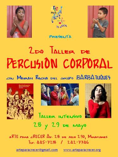 c) 2do Taller de Percusión Corporal - curso intermedia para egresados del 1er Taller (marzo'11) de 6:00 a 9:00pm.